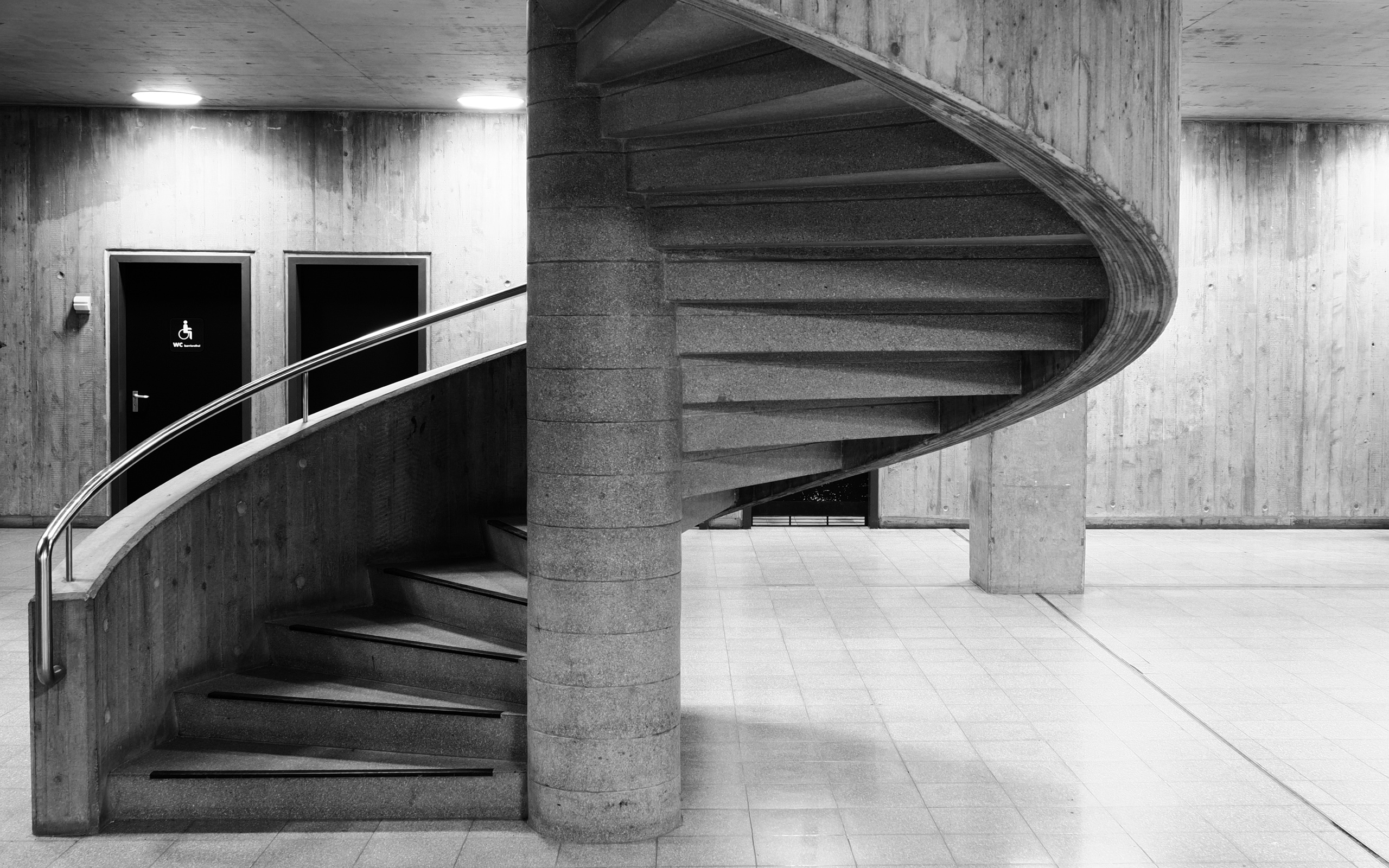 ... zum WC. Beton-Architektur der modernen 70er